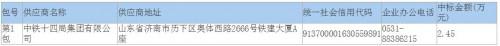 本項目中標(biāo)供應(yīng)商為:中鐵十四局集團有限公司、中鐵建發(fā)展集團有限公司、中節(jié)能國禎環(huán)保科技股份有限公司聯(lián)合體;中標(biāo)金額的單位為元/立方米,本項目中標(biāo)金額為污水處理服務(wù)費綜合單價2.45元/立方米。
